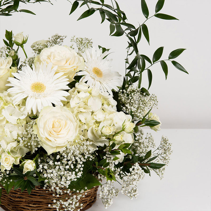 Show your love with this beautiful basket of mini gerberas and mondial rose.