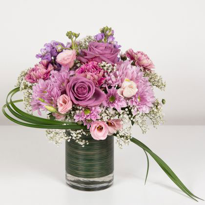 Spread the joy with this arrangement of roses, mums, carnations, and more.